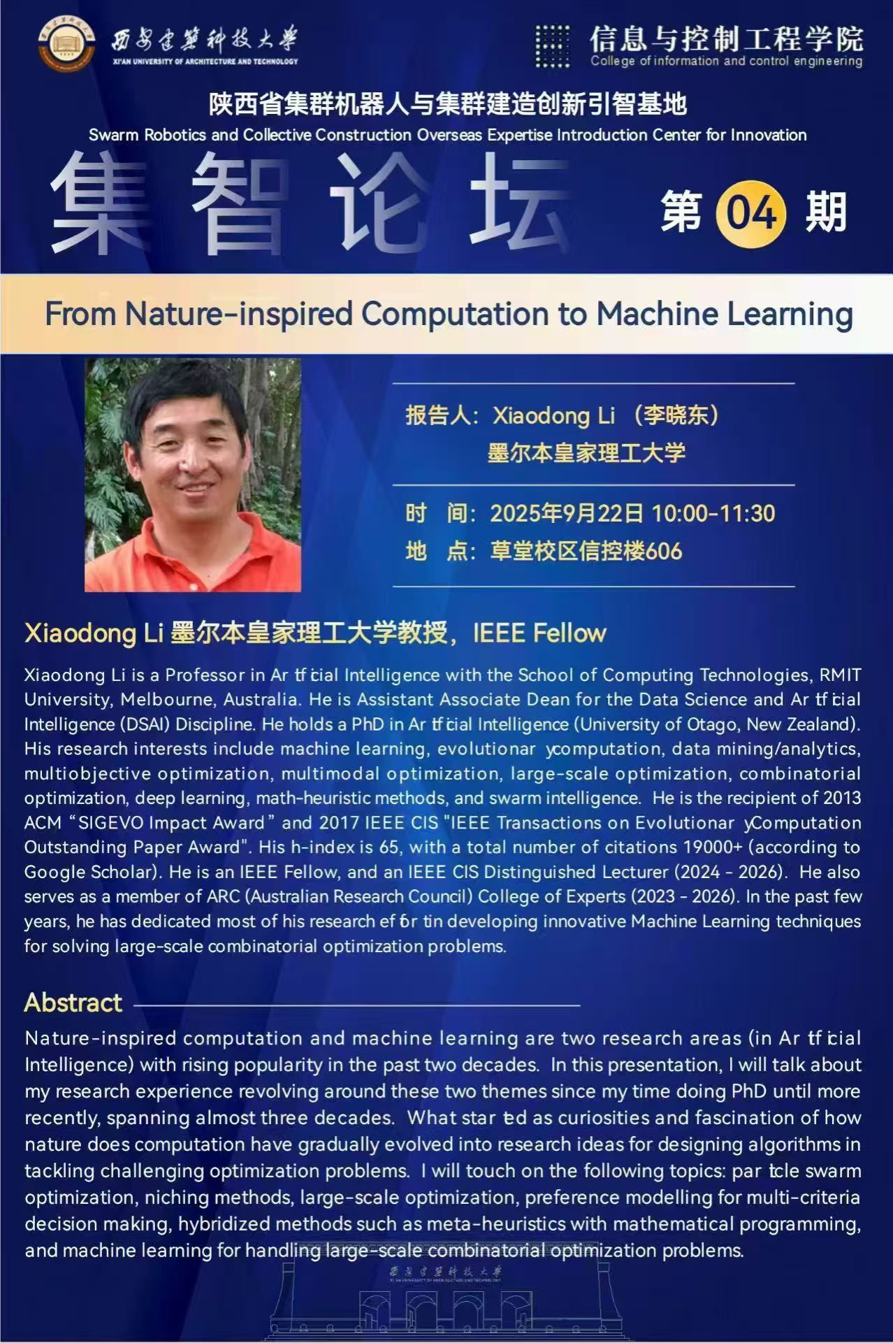 【集智论坛】第四期:From Nature-inspired Computation to Machine Learning