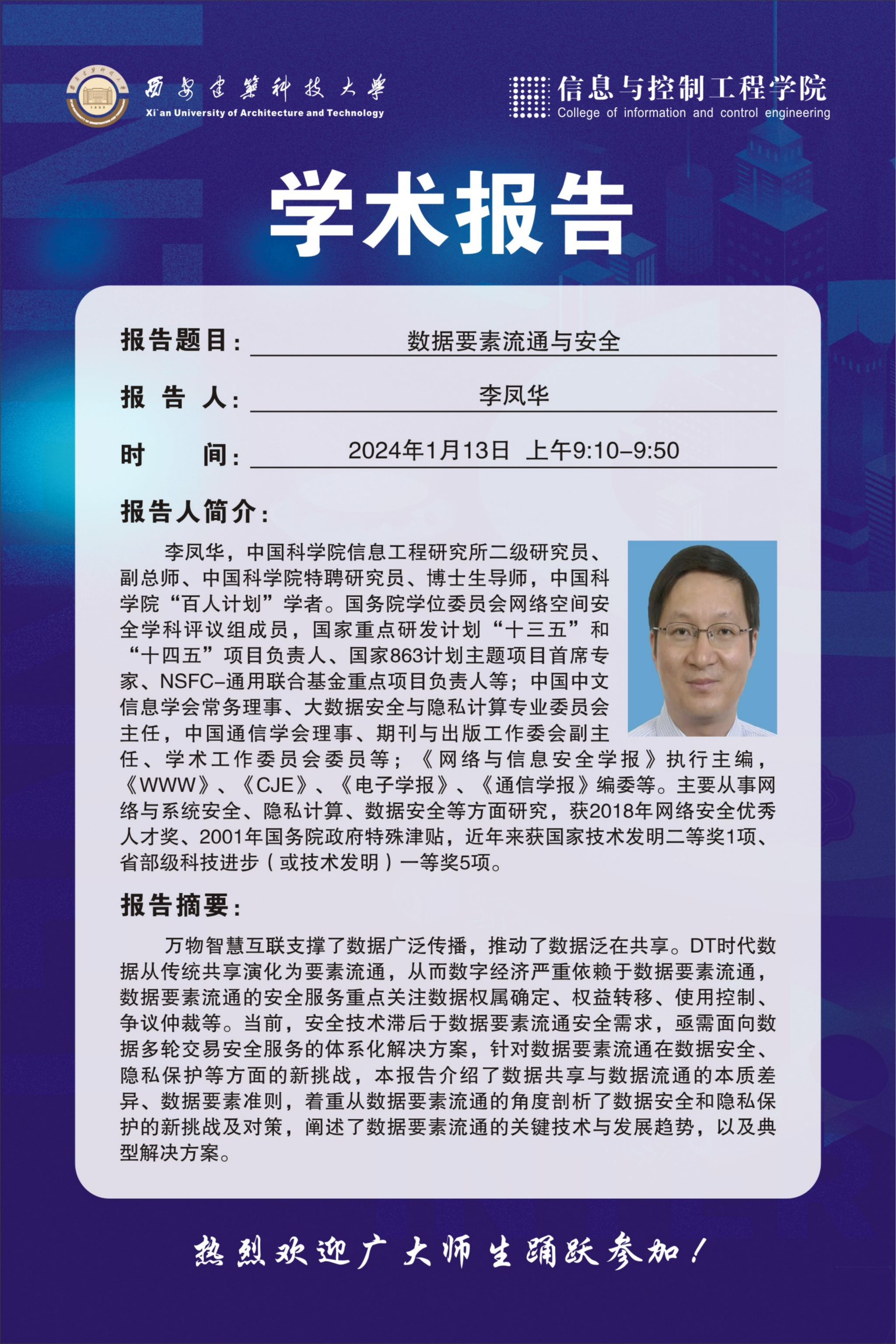 地 点:草堂校区学府城6-301报告厅