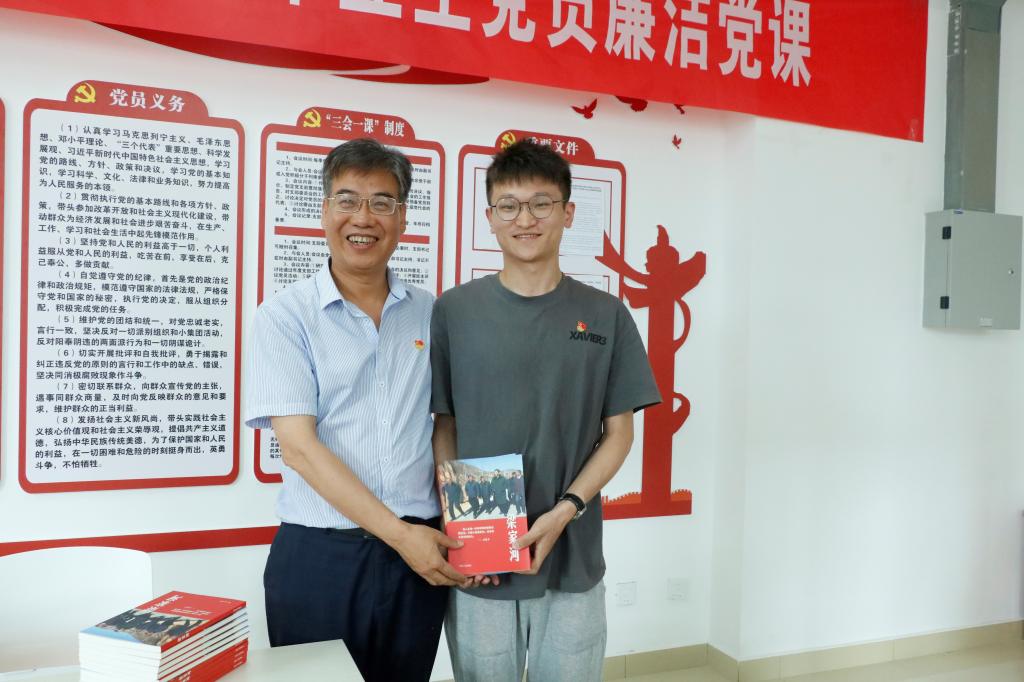 吴昊代表学院党委向毕业生党员赠送学习书籍,殷切希望同学们自觉加强理论学习,不断锤炼党性修养,在新的学习和工作岗位上充分发挥党员的先锋模范作用,积极奉献,奋力进取,开启人生新的华章。最后全体党员重温入党誓词。