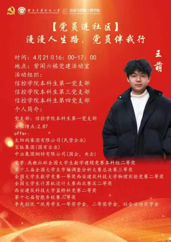 “青春是奋斗的时光,也是筑梦的年华。”本次‘漫漫人生路,党员伴我行’活动将为同学们提供一个展示自我、交流学习的平台,让大家在党建工作的引领下茁壮成长,为实现自己的青春梦想努力奋斗!