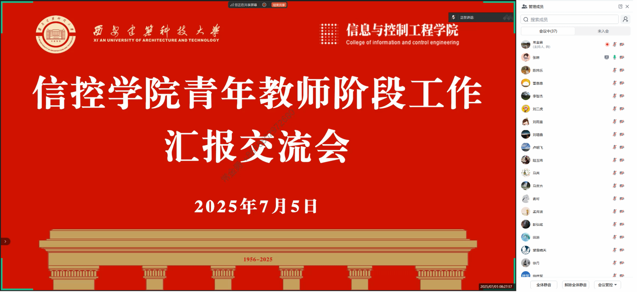 线上召开了“青年教师阶段工作汇报交流会”。学院党委书记于军琪、院长马宗方、副院长李智杰、各系负责人以及全体青年教师共同出席了会议,会议由学院专项事务助理、计算机系主任常金勇主持。