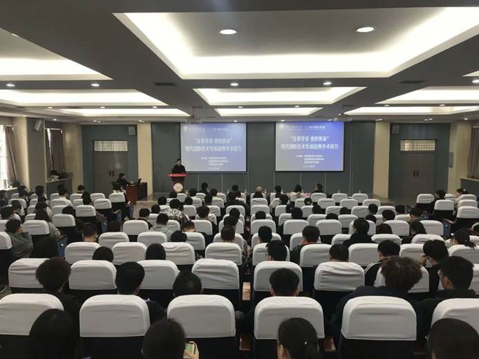 中国航天科技集团电子技术研究院陈效真总师作了《登火探火看人类科技文明,珍惜机遇跻身现代国防装备》报告。陈效真总师首先从我国探索火星的历史发展和宇宙智慧的生命进化经历的8个阶段,告诉大家“科学引擎繁荣”,鼓励大家坚定科研报国理想。随后,从“劳动创造人类,制造凝筑智慧,测量揭示奥秘,试验认知本真”,为大家树立专业自信。报告最后,陈效真总师鼓励大家脚踏实地,夯实专业知识,为国家“航天大国到航天强国”的转变努力奋斗。
