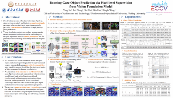 硕士研究生靳杨在国际顶级会议ECCV上发表题为“ Boosting Gaze Object Prediction via Pixel-level Supervision from Vision Foundation Model ”(基于视觉基础模型的像素级监督增强的凝视物体预测)的学术研究论文。靳杨为论文的第一作者,豆花视频