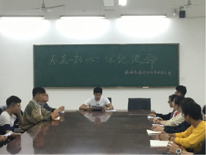 本科生第四党支部于南山书院201召开了“不忘初心、牢记使命”主题教育学习会议,党支部书记、辅导员王栋以及党支部全体成员参加会议。