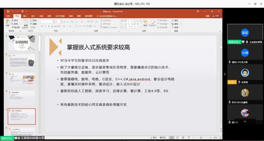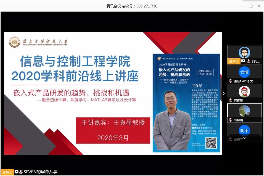 本科生第一党支部承办的“2020学科前沿线上讲座”正式开讲。本次线上讲座由高级工程师王真星教授带来题为“嵌入式产品研发的趋势、挑战和机遇(融合边缘计算、深度学习、MALTAB算法和云计算)”的报告。豆花视频