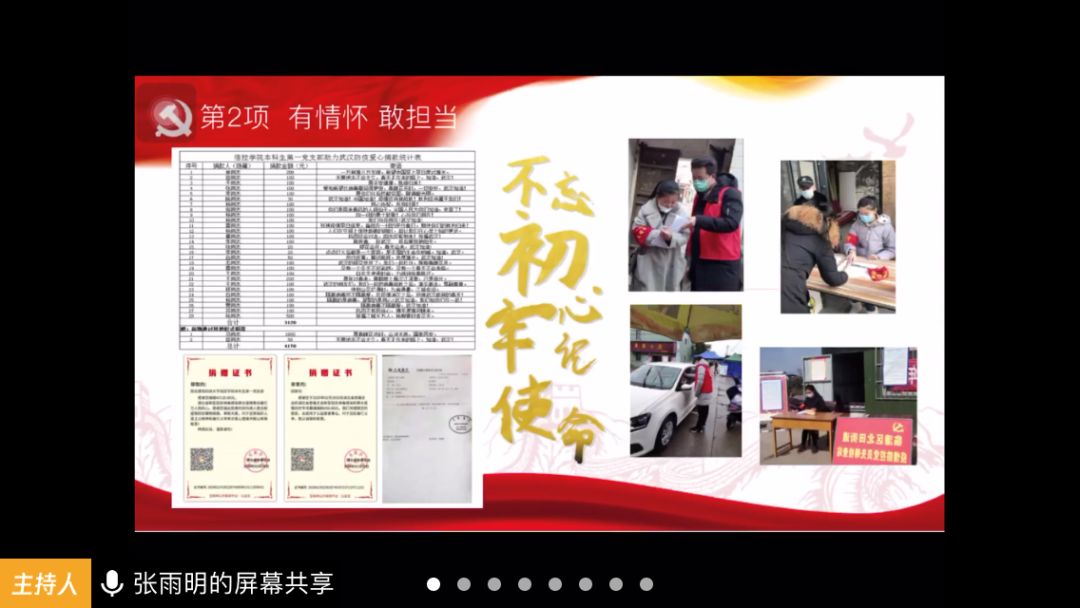 张雨明同志提出,学生党员要胸有情怀,敢于担当,不论什么时刻都要不忘初心,牢记使命。会议中,大家学习了《教育系统广大党员积极捐款支持疫情防控》文件精神,共同致敬先进优秀共产党员,并以他们为前进目标,以实际行动支持疫情防控工作。在抗疫最艰难的时期,豆花视频