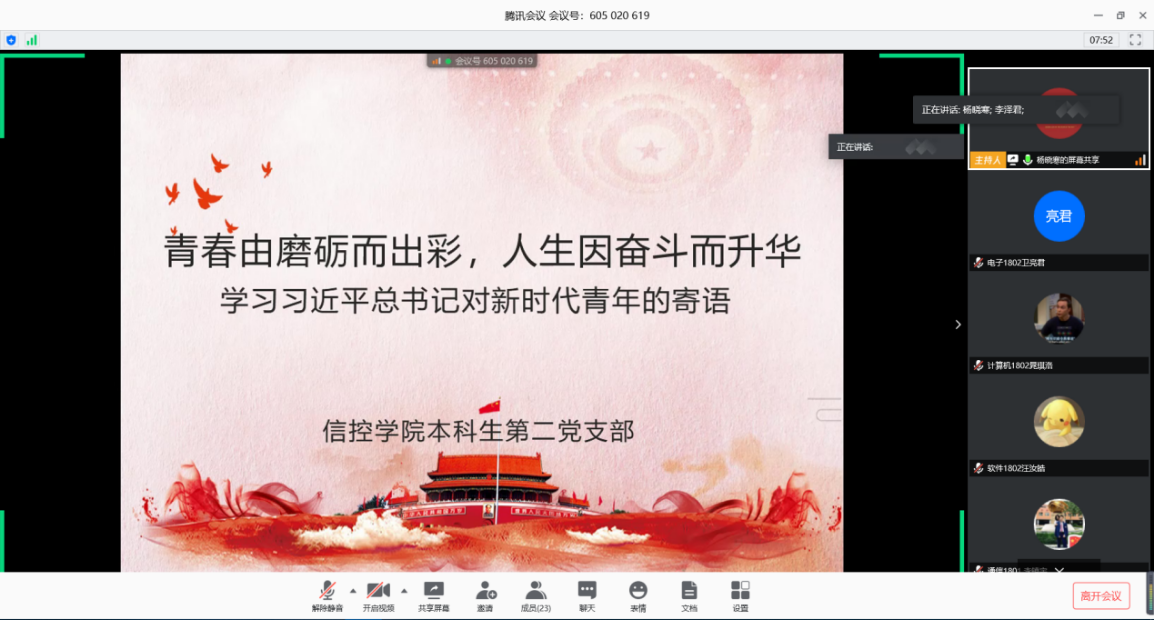 本科生各党支部分别开展了主题党日活动,深入学习并讨论习近平总书记对新时代青年的寄语精神。