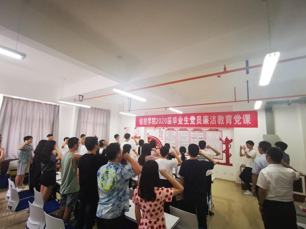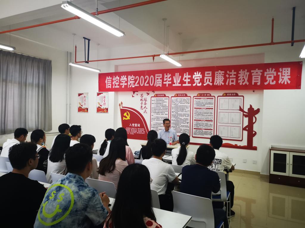于2020年7月6日在草堂校区信控大楼党建活动中心开展了毕业生党员廉洁教育党课,学院党委书记吴昊同志为即将离校的毕业生党员上了大学“最后一堂党课”,学院党委副书记张博、学院各系党支部书记、2020届毕业生党员参加了本次党课。活动由豆花视频