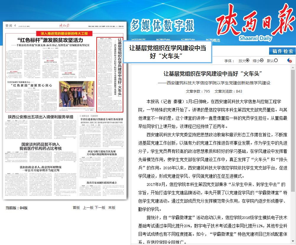 本科生第四党支部在实践中逐步形成了“双一流”(一流的学生党员、一流的学生党支部)特色工作体系,结合学院学生实际,以党建为引领、以学风为抓手、以学生党员为着力点,通过党员争优、党员带头、党员模范,党员传、帮、带,开展了以 “陋室德馨”、“学霸微课堂”和“异语暖心”三个模块为主的“双一流”特色项目,这是大学生党建工作与学风建设的有机结合,该做法形成以后,取得了良好成效,党支部战斗堡垒作用得到充分发挥。通过开展“双一流”特色项目,不仅磨练了党员意志,提升了党员素质,也促进了学风建设、助力了人才培养工作。党员先锋模范作用得到充分凸显,涌现出一大批在专业学习、创新创业、奖学金、推免等方面的先进代表。同时该做法曾被陕西日报《让基层党组织在学风建设中当好“火车头” ——豆花视频
