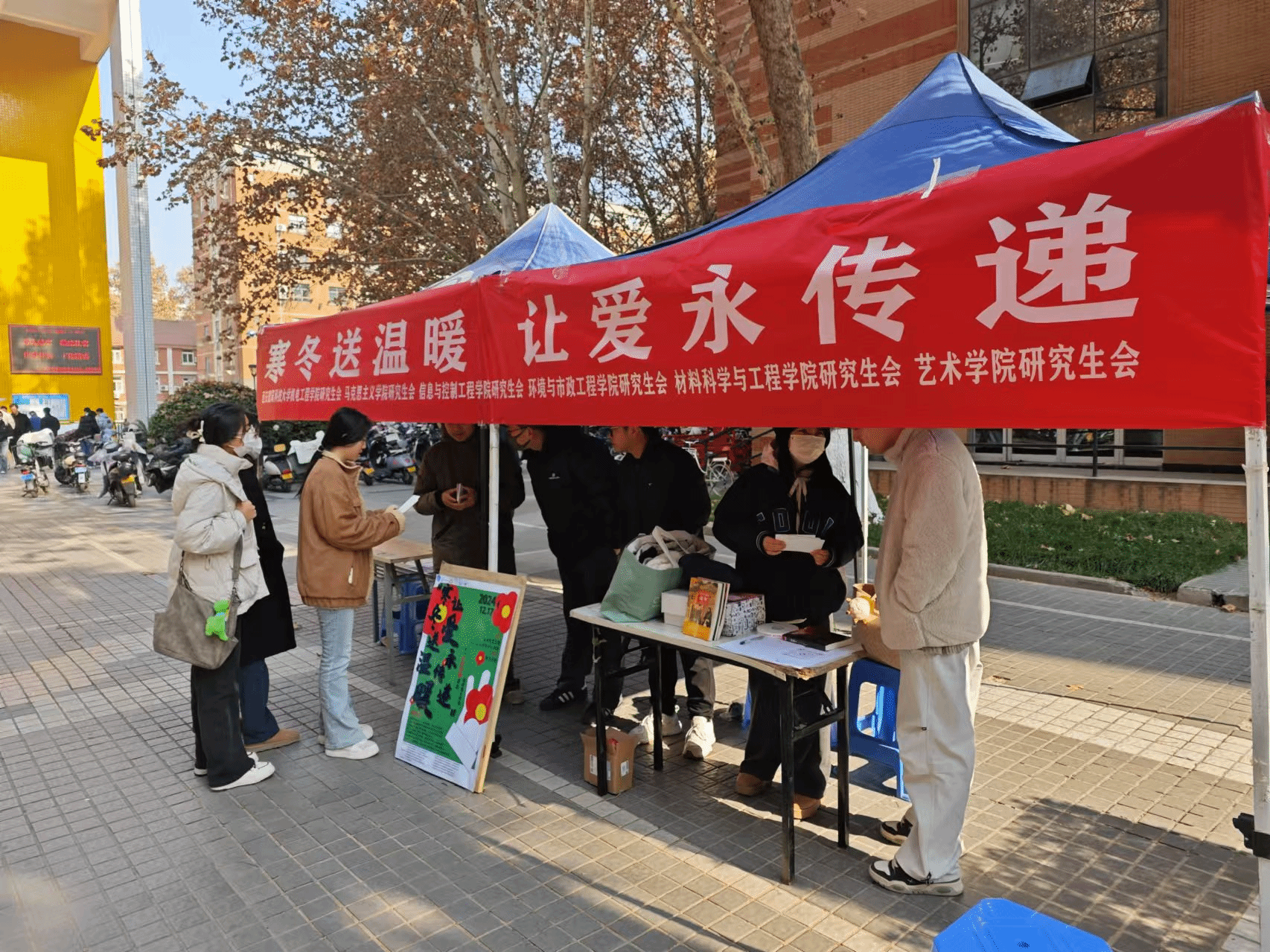 研究生会联合机电工程学院研究生会、马克思主义学院研究生会、艺术学院研究生会、环境与市政工程学院研究生会和材料科学与工程学院研究生会在雁塔和草堂两校区共同举办了“寒冬送温暖,让爱永传递”捐物活动。