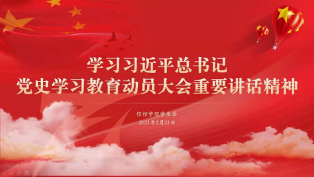 学生会主要学生干部通过线上会议集中观看“党史学习教育动员大会”,并就习近平总书记讲话内容进行交流分享。