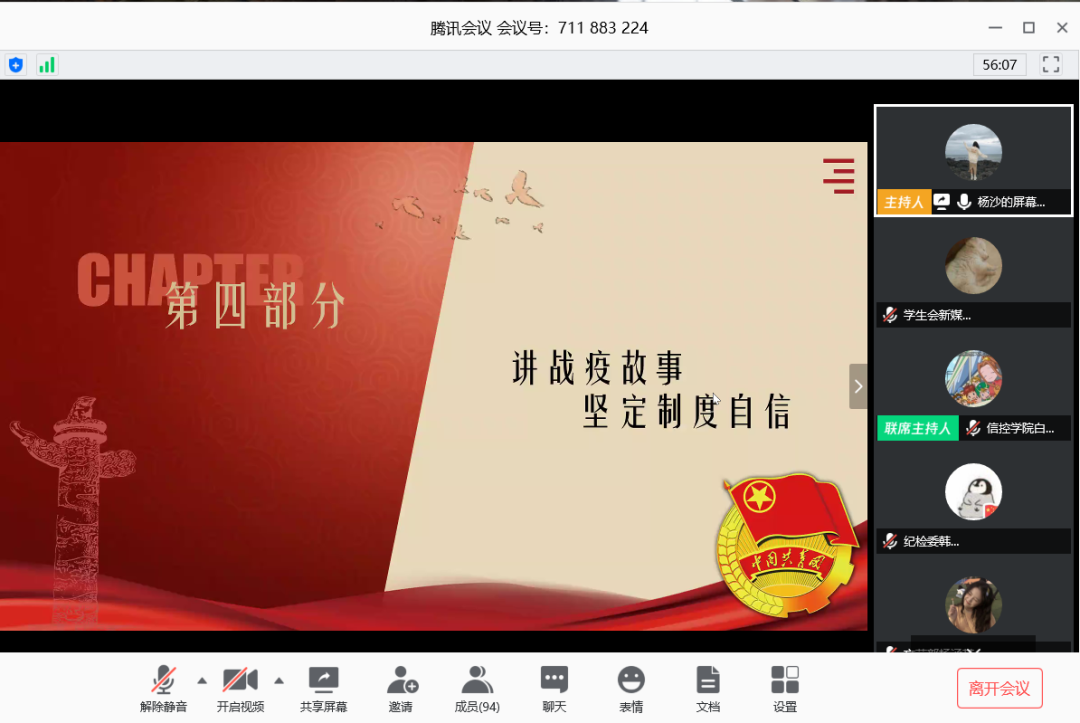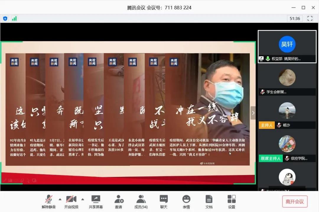 学生会于5月8日开展“战疫情展青年风采,学理论强制度自信”线上主题团日活动,会议由豆花视频