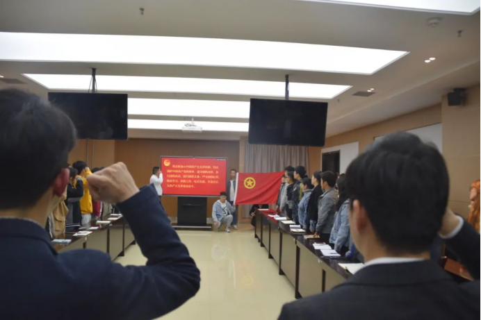 团支部工作条例》和团的十八届五中全会精神。最后,全体人员重温入团誓词,会议在青春洋溢的团歌声中结束。