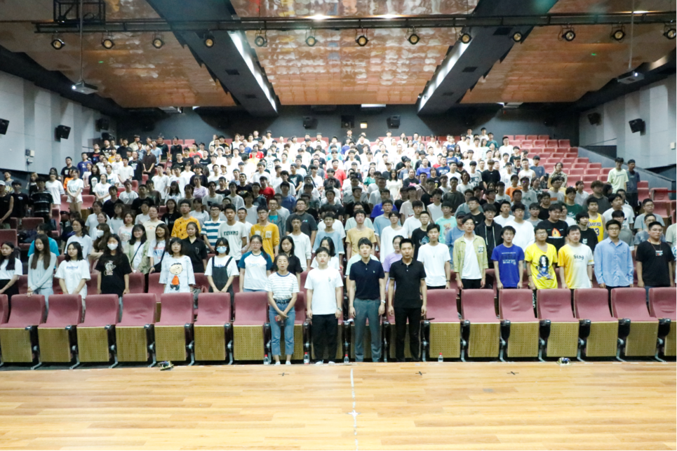 在南山小礼堂举行2021年暑期“三下乡”社会实践动员大会。信控团委书记张颉、2018级辅导员杨晓寒、2019级辅导员孙正清、2020级辅导员赵莎与400余名学生代表参加。