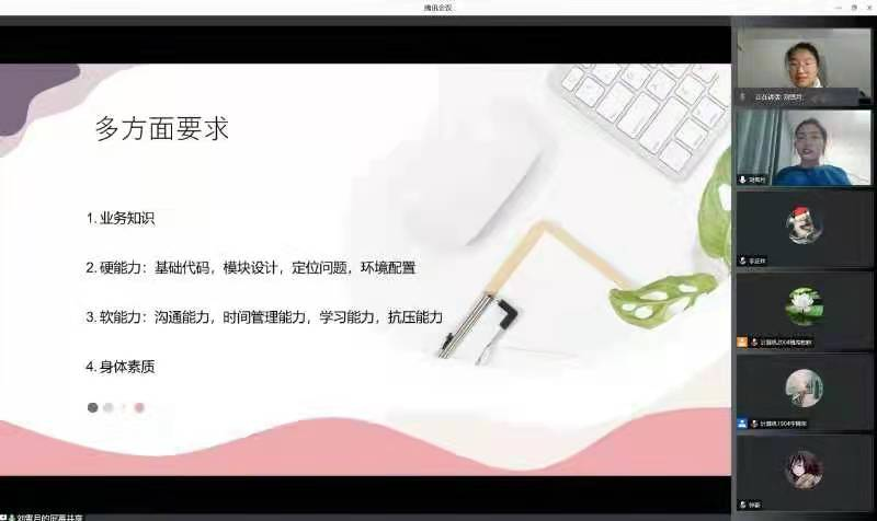 邀请2013级通信专业校友、华为技术有限公司软件开发工程师刘雪月与主要学生干部线上座谈。会议由豆花视频