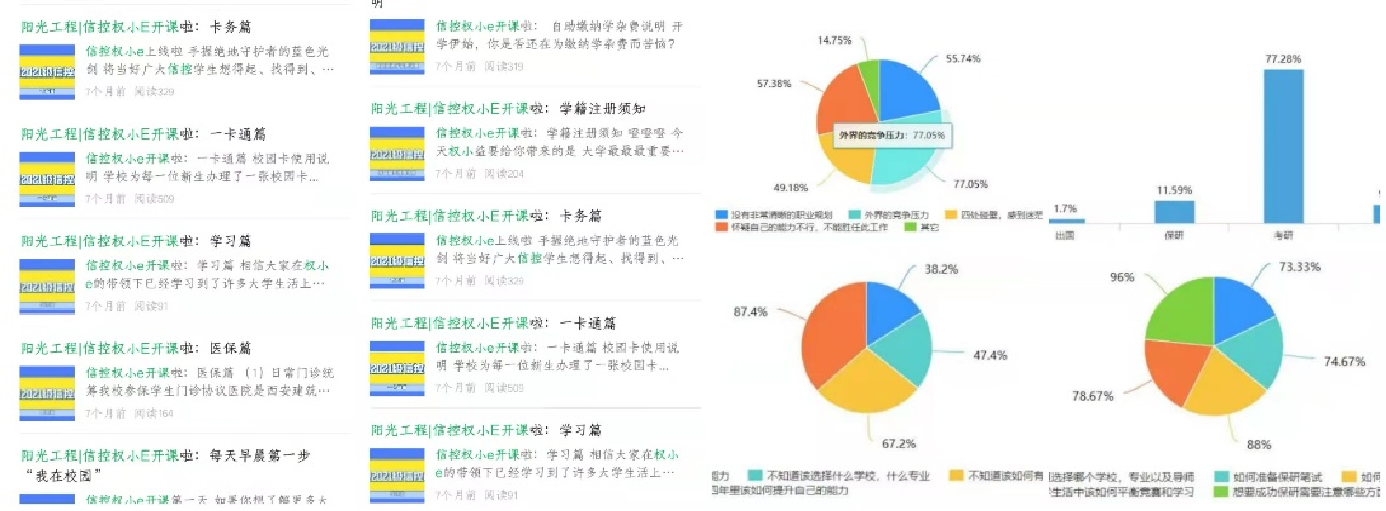 聚焦主责主业,助力学风建设。立足周而赴试成绩,建立“学生成长数据库”。帮助同学分析短板问题,助力学院学风建设、创新创业。
