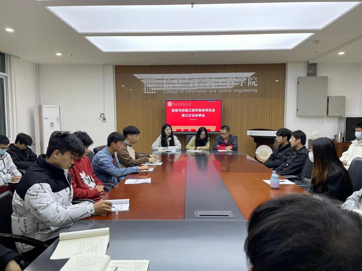 研究生会在信控楼513会议室召开了2022年秋季学期第三次全体会议。会议由主席团成员李国荣同学主持,2022级各班班委及研究生会全体成员参与会议。