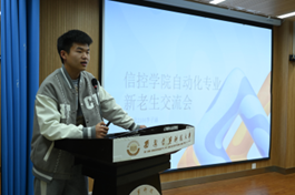 自动化2020级、本科生第一党支部尹国通从学习经验、社团活动、学科竞赛、科研项目、志愿服务等方面分享他的大学生活,强调到大学生要更多地依靠自主学习,积极主动地探索和学习新知识。自动化2021级、本科生第二党支部李子涵从学习效率、身心健康及社交活动介绍了大学生生活的多样性,鼓励同学们要提高专业相关技能,如编程能力、硬件设计能力,要养成良好的生活作息、保持健康的身心状态。自动化2022级、本科生第四党支部刘亚飞立足课程学习,深入分析了大一下学期的自动化专业课程的复杂性,着重介绍了其难度和挑战,并为学弟学妹们提供了宝贵的学习指导和帮助。他着重提醒学弟学妹们大学不挂科是底线,而高绩点是奋斗的目标。