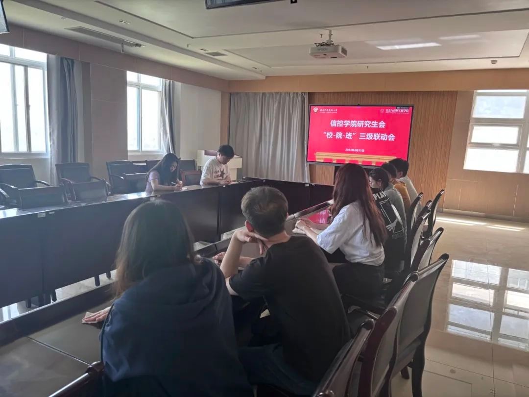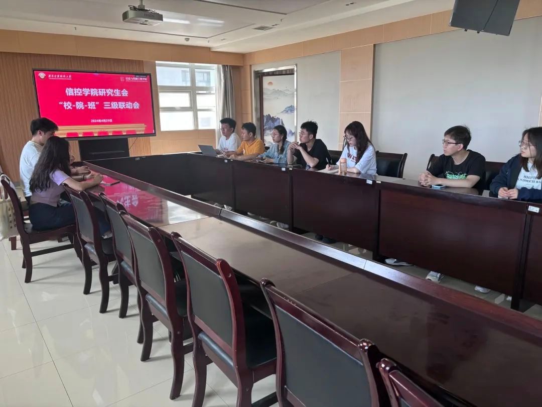 研究生会于信控楼504会议室召开了“校-院-班”三级联动工作交流会,校研究生会主席团成员张乐乐,信控研会主要负责人以及研究生各班代表参加了本次会议,会议由豆花视频