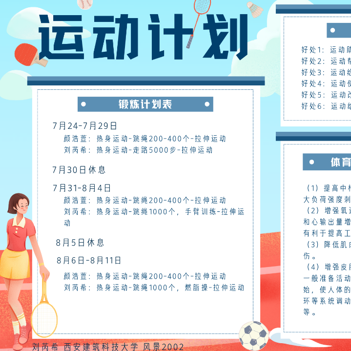 PART 1一起健康运动大学生志愿者引导并带领中小学生运动,每人每天运动不少于30分钟,运动形式、地点不限,鼓励利用互联网方式进行打卡记录和竞赛互动,每位学生在活动结束前须形成一份图文并茂的个人运动打卡记录表。
