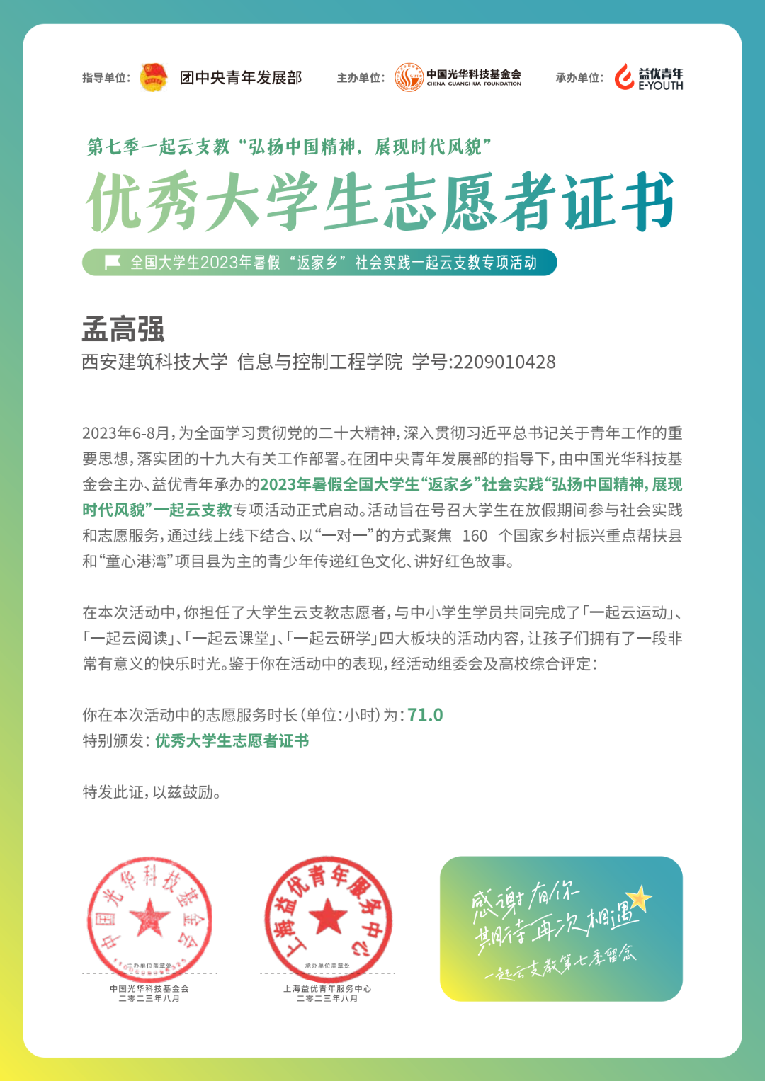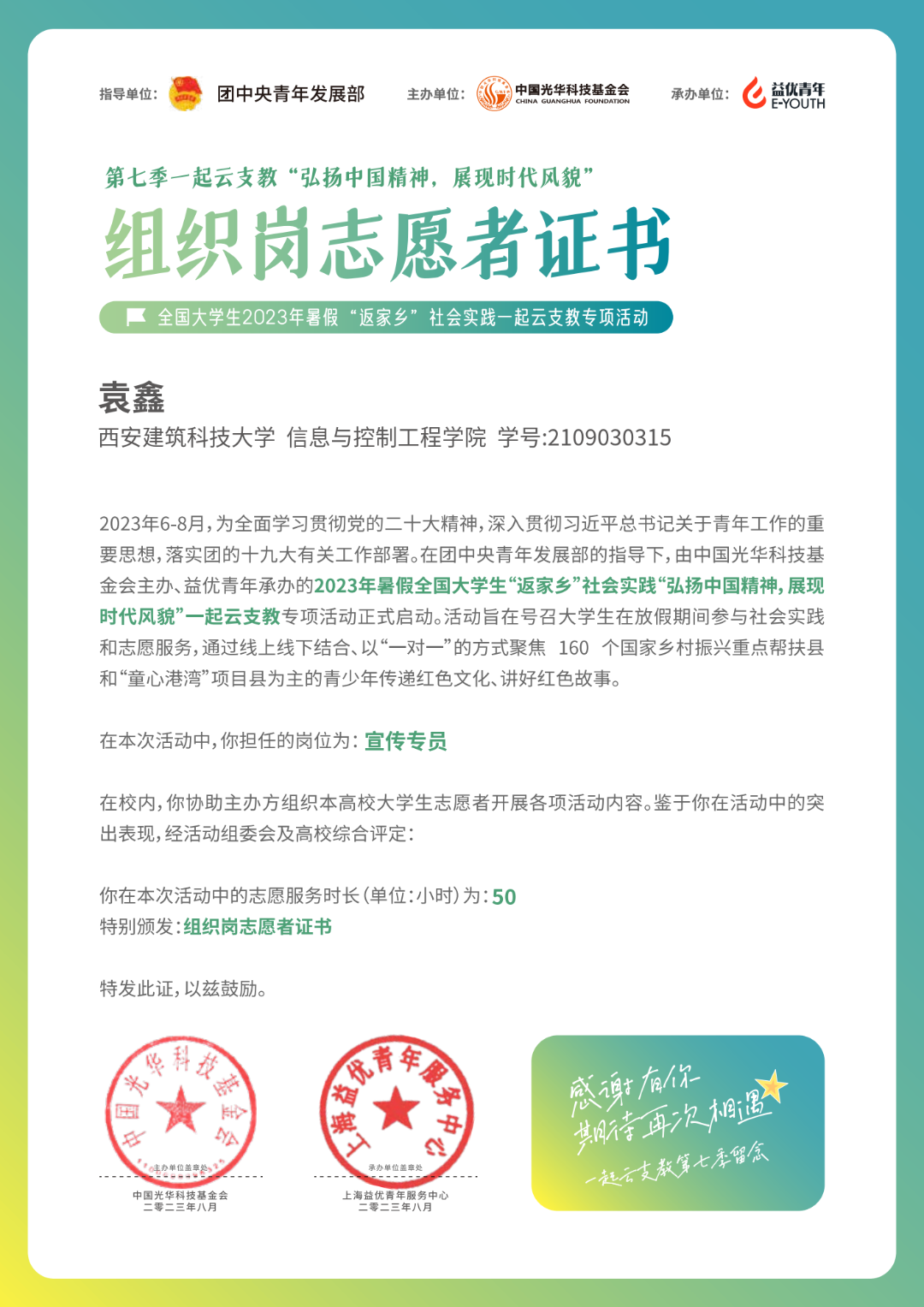 为全面学习宣传贯彻党的二十大精神,深入贯彻习近平总书记关于青年工作的重要思想,落实团中央有关工作部署。由团中央青年发展部指导,中国光华科技基金会与各大高校联合举办第八季“传承优秀文化·赓续中华文脉”全国大学生2024年寒假“返家乡”社会实践一起云支教专项活动。