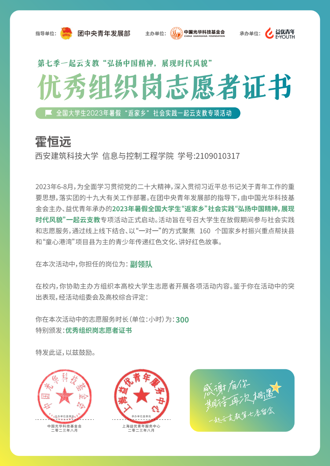 ①主办方会颁发志愿者证书;(优秀奖为纸质版证书;普通奖为电子版证书)。