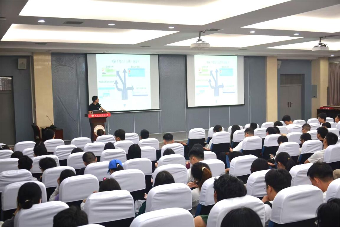 毕业生的就业状态和就业热情,通过生动活泼的案例讲解同学们在就业过程中遇到的各种问题,告诫同学们要善于发现自己身上的闪光点,用积极健康的心理状态直面困难,迎接挑战。接着,她指出在当下就业形势下,要树立“先就业再择业后创业”的就业观,变主动为被动,要找准定位,明确努力的方向,以时不我待的紧迫感求职,最终寻找到理想的就业岗位,实现就业目标。