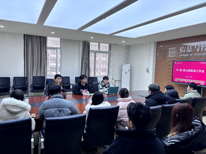 研究生会在信控楼513开展“聆听习近平主席新年贺词,我们对未来充满信心”专题学习会暨“校-院-班”三级联动工作交流会,校研究生会主席团成员赵廷宝、豆花视频