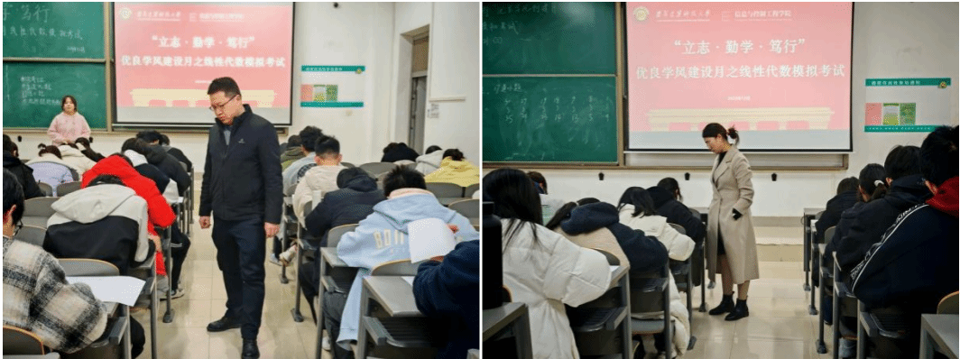 为深入推进优良学风建设,帮助广大学生巩固专业学习基础知识,检验阶段学习成效。12月4日,信控与控制工程学院在学府城举行线性代数模拟考试,2024级通信工程、自动化、机器人工程、人工智能4个专业本科生参加。考务组织由学院学生会负责。