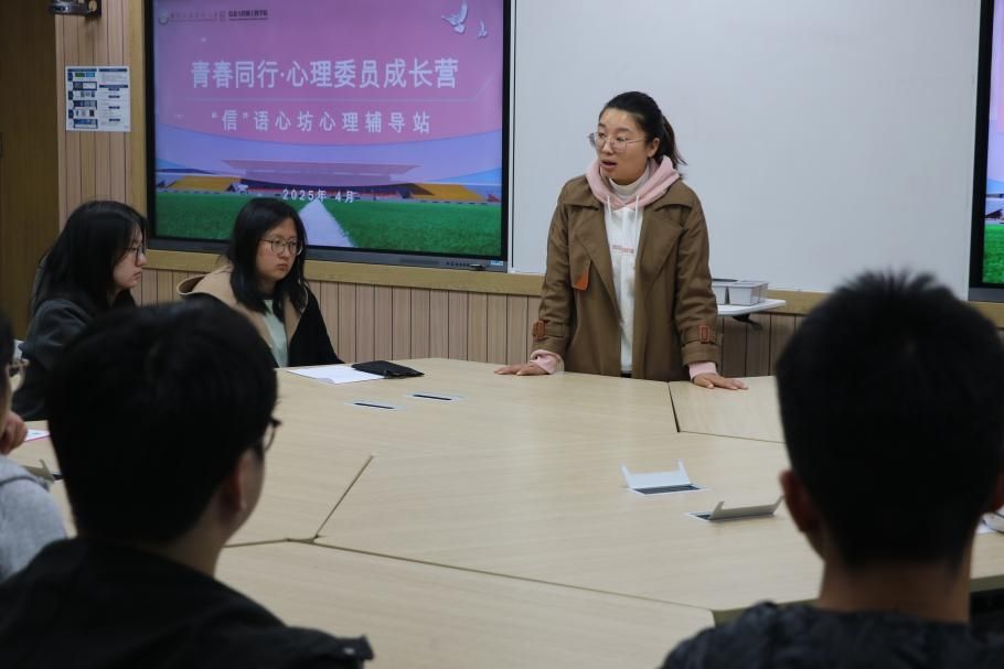 信”语心坊心理辅导站在学府城16-110“开展“青春同行·心理委员成长营”培训活动。心理中心王平老师、学院心理委员代表参加此次培训会,会议由学院心理专干赵莎主持。