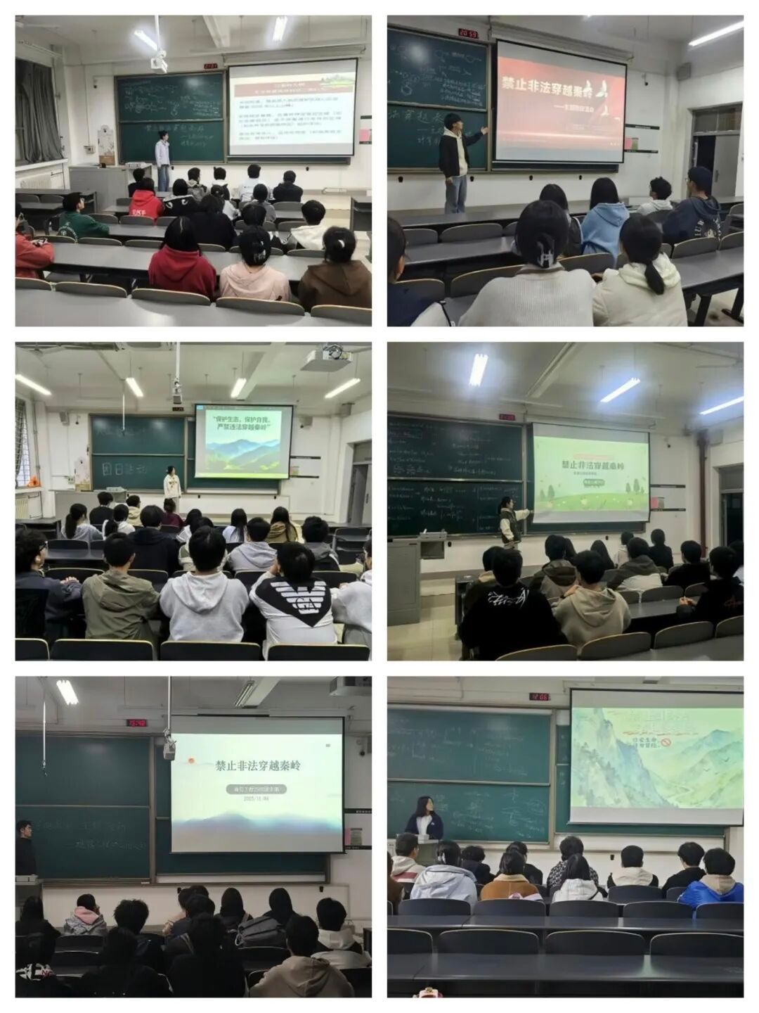 各班围绕“什么是非法穿越”“秦岭非法穿越为何必须严令禁止”“为何对秦岭非法穿越如此严格”等方面开展主题班会,并结合《陕西省秦岭生态环境保护条例》等相关法律法规,引导同学们成为秦岭生态保护的宣传员和监督员,明确认知秦岭核心保护区、重点保护区等区域的界限,主动向身边的亲友、同学宣传保护区的相关规定和环保知识,勇于劝阻、制止非法穿越和破坏生态环境的行为,形成全社会共同保护秦岭的良好氛围。
