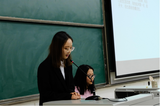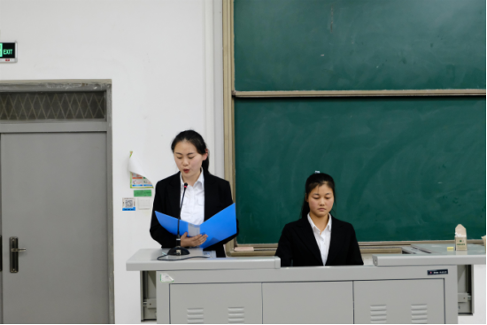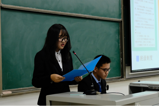 大会在国歌声中起始,在主持人介绍完答辩要求与评分事项后正式进入答辩环节。首先进行的是先进班集体竞选答辩,参与竞选的班级代表人分别从班级的学习氛围、文化建设、文体活动、未来展望等方面将班级近学年来所取得成绩与荣誉进行展示。同时又对班级内的四六级通过率、个人竞赛获奖情况等进行介绍,分享了班内特有的学风建设活动。每位班级代表都信心满满,用稳健清晰的演说传达着自己班级的自信与实力。