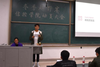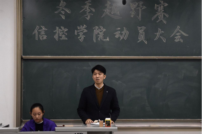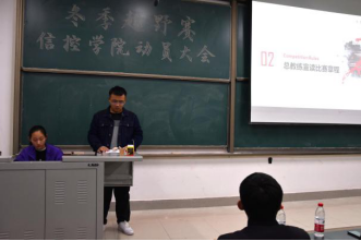 首先由往届参赛代表韩东东同学发言,他分享了自己曾经的参赛经验并强调了在训练和比赛过程中的注意事项。同时鼓励运动员们在训练中听从指挥、服从安排,在比赛中奋力拼搏、突破自我,在未来的学习生活中养成良好的运动习惯。接着,学生会体育部部长王建川同学为大家宣读冬季越野赛比赛章程,使运动员们明确比赛规则,在比赛中秉持“公平公正”和“安全第一”的原则,希望同学们积极认真训练,不断进步。