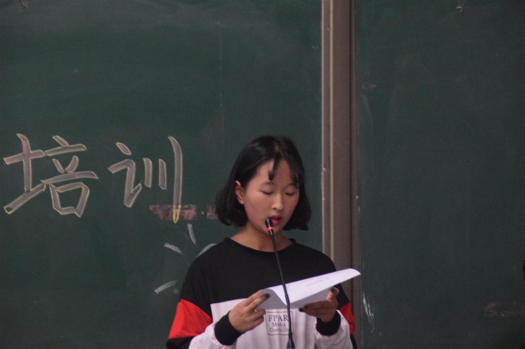随后,学生会副主席曹文强上台宣读本次培训内容及比赛规则。紧接着,裁判员代表易成宣誓,他表示将坚持“客观、公平”的原则,严格遵守裁判员规则,全心全意完成各项裁判工作。最后,由参赛选手代表杨涵喆宣誓,她保证遵守比赛规则、服从比赛安排,承诺将不断借鉴学习,提升技能,努力在比赛中做到最好。
