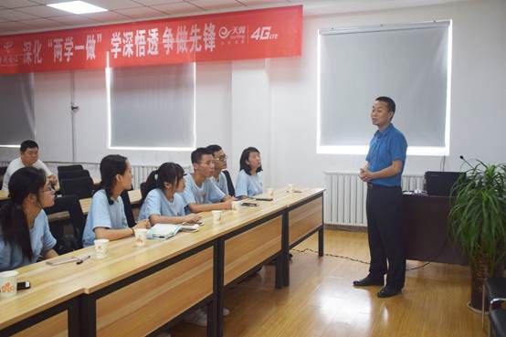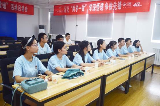 首先由蔡家坡电信分公司经理介绍“农村信息化大平台”的主要特点,并向队员们详细介绍了乡村定制APP的界面和具体模块。随后对此APP的使用进行了演示,中国电信的创新能力令人叹为观止,同学们也十分认真地聆听经理的讲解。紧接着,队员们就“办事大厅”模块一站式服务的效率性提问了电信公司经理,经理结合此平台与多方联系的特点,向大家表示其效率十分具有优越性。讨论末尾,队员们向电信公司经理提出了自己发现有关此APP存在的部分问题的问题,经理表示接受并承诺改善,最后,队员们与经理合影留念。