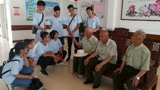 上午十时,实践队抵达了敬老院,并得到了敬老院负责人的支持。首先,全体队员在护理科科长的带领下,参观学习了整个敬老院的建设情况。在科长的介绍下,同学们更进一步地了解了敬老院的历史、人员构成、发展状况等。接着,队员们见到了敬老院的革命老战士,并为老红军们送上了营养品。科长带领同学们去拜访老红军王布福爷爷,同学们的到来,瞬间活跃了敬老院的氛围,各位爷爷奶奶纷纷和同学们交谈,一直持续到了午餐时间。