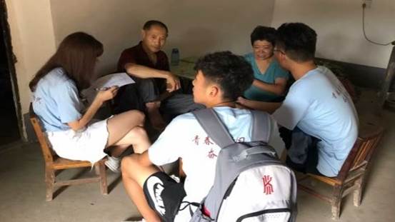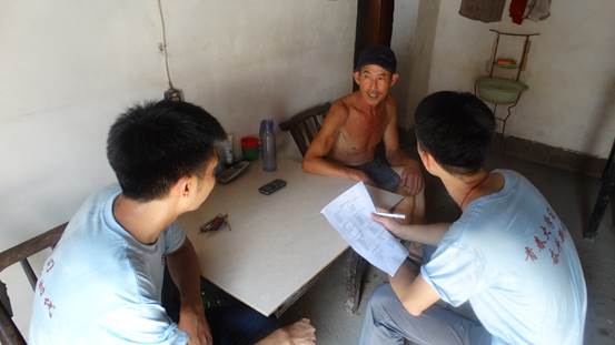 在与村支书和村主任的短暂交流之后,实践团沿山路徒步一小时深入当地山上较典型的贫困户家庭中,在与村民交流过程中,队员们积极主动同当地居民核实村委扶贫工作、脱贫工作、巩固工作的落实情况,并通过调查问卷与采访交流的形式,详细了解了贫困户家庭的生活状况和主要困难,咨询村民对国家帮扶政策的了解程度与改进意见。据老乡反映,政府精准扶贫一系列政策的实施为自己的生活带来了很大的改进,吃水短缺的问题也基本解决。此外,受访村干部也说明,目前村上仍未脱贫的家庭只留下五保户,镇政府和村委会正在积极思考扶贫方法帮助其全面脱贫。