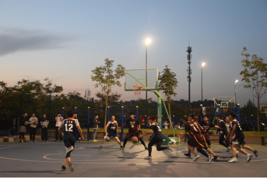 篮球队及体育学院篮球队同组织方裁判员共同参与比赛。