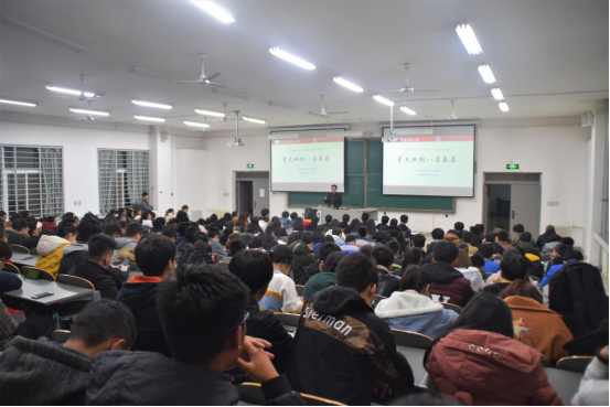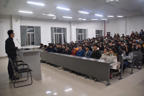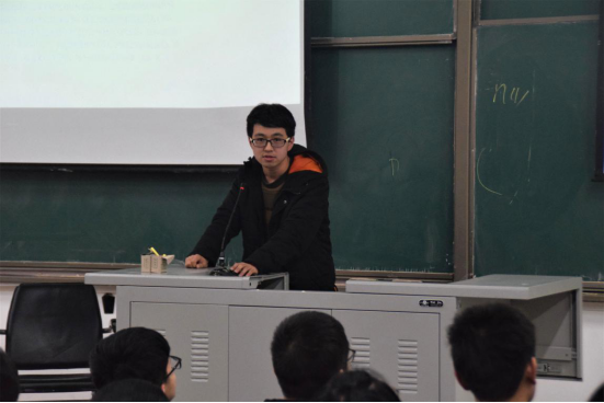 宣讲会开始,张雨明借“如何制造舒适座椅”这一问题引导同学们进入主题。随后,他向大家介绍了“数学建模”及“互联网+”的准确含义,并联系自己的毕业设计为大家讲解了继电器、单片机等相关知识。他鼓励同学们积极组队参加各类竞赛与创新创业实践活动,提高竞赛知识,提升创新意识,增强团队协作能力,并建议同学们对汇编语言做深入学习。