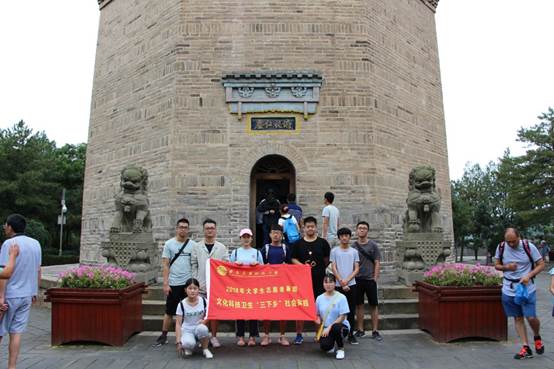 在队长的带领下,队员们开始了行程,初登宝塔,映入眼帘的不是从远处看去一座普通的塔,而是充满的古朴与萧瑟,令人敬畏。往山下望去,延安城景色尽收眼底,旁边旅游团的导游在一旁讲解着宝塔的来历,说到一句“登泰山而一览众山小,登宝塔而一览延安城”将此时场景尽现。塔旁有一洪钟,称明代铁制洪钟,用于革命时期的报时与报警。之后团队继续自己的行程,踩着一层又一层的台阶,路途旁各式各样的树木交替种植,令人仿佛身处于绿色天堂。路边的仿制树洞播放着一首又一首的红歌,熙熙攘攘的人群中有许多穿着红军衣裳的游客,走在路上,就好像置身于革命时代,令人久久难以忘怀。之后队员们登上了摘星楼,领略了一次“高处不胜寒”,下方的少许窑洞,也有着革命时期的影子。队员们穿过丛林小道,参观了嘉岭书院的碑文,登上了烽火台,感受了下古代战争的氛围。队员们在每处都有着合影与留念。