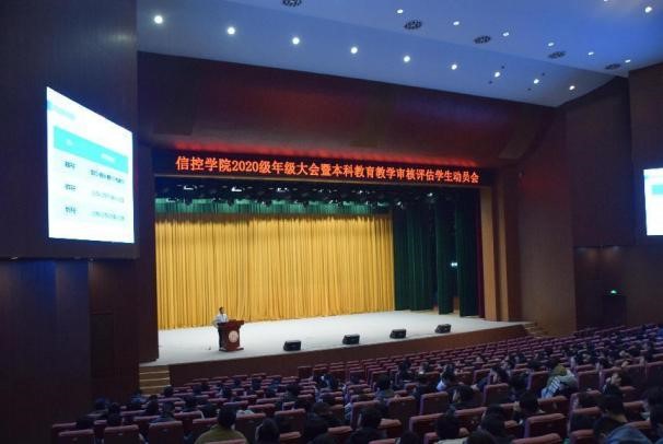 在紫阁大礼堂召开2020级年级大会暨本科教育教学审核评估学生动员会。本次年级大会特邀研途考研王墨钊,20级本科生辅导员赵莎及20级全体本科生参加,会议由20级辅导员王凯主持。