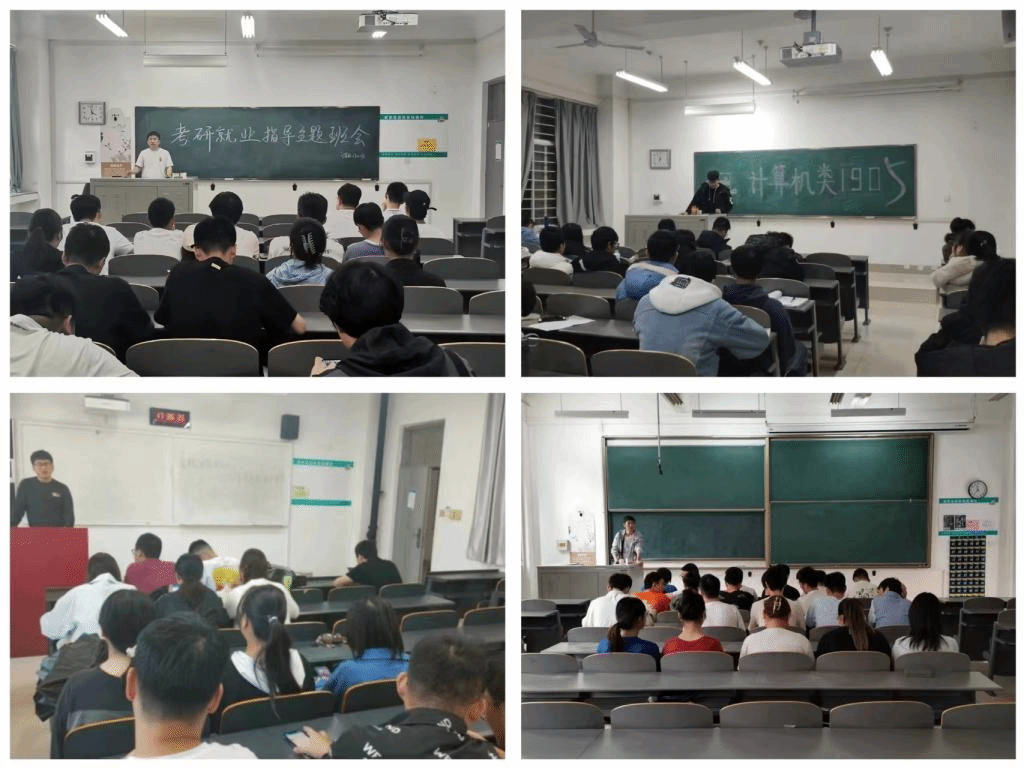 会前,各班收集了同学们对于考研和就业方面的困惑和问题,班会内容主要包括考研复试、调剂相关问题,出国,求职困难,行业企业岗位介绍及薪资待遇,毕业季安全稳定及爱校荣校教育等方面的内容。