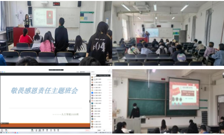 2021级组织进行“敬畏·感恩·责任”主题班会。