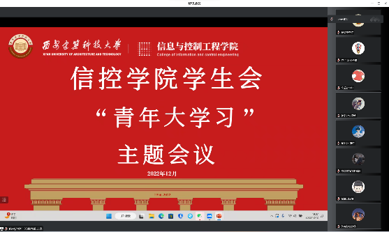 学生会在腾讯会议召开“青年大学习”集体学习活动。会议旨在组织引导广大青年深入学习宣传贯彻习近平新时代中国特色社会主义思想及党的十九大精神,让更多当代大学生更加了解青年的职责所在,坚持突出理论武装和思想引导,着力提升学习的制度化和实效性,提高每一个大学生思想高度。"青年大学习"行动 是中国共产主义青年团中央委员会开展的一项以"引导共产主义青年团成员深入学习习近平新时代中国特色社会主义思想的行动,构建了"导学、讲学、研学、比学、践学和督学六位一体的学习体系" 。