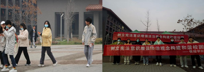 学生会于12月4日在紫阁书院食堂门前广场处开展了“弘扬宪法精神,树立宪法权威”宪法日活动,组织广大师生积极参与本次活动。