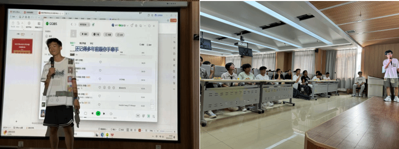 李朝老师与同学们盛情合唱陈奕迅的《十年》,更是将茶话会的气氛推向了高潮,师生之间的情谊在歌声中流淌,整个茶话会充满了温暖与欢乐,成为了大家心中一段难忘的中秋记忆。