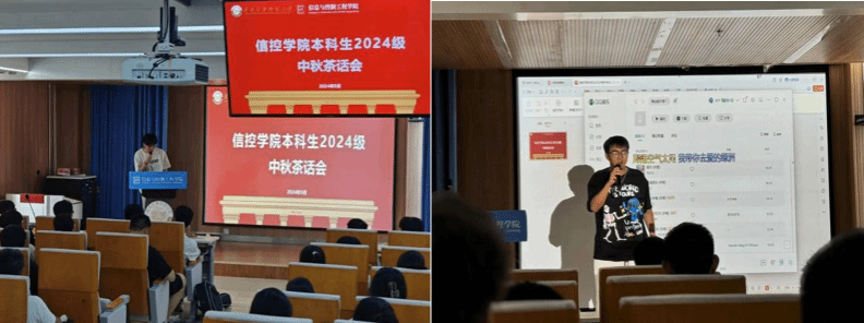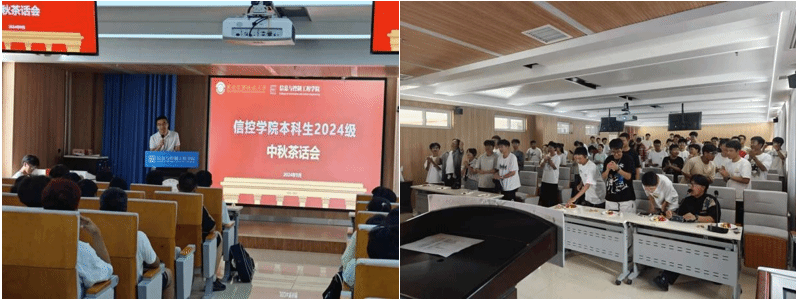2024级本科生在信控楼606举办中秋茶话会。2024 级辅导员李朝以及留校新生代表参加此次活动。