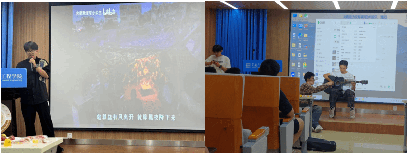 茶话会在徐健同学幽默热情的主持下拉开帷幕。精彩节目轮番登场,活力四射的歌曲瞬间点燃全场,青春洋溢的旋律彰显学子风采,深情的演唱令人感怀,成熟的演绎展现蜕变,温暖的歌声抚慰人心,吉他弹唱引得尖叫连连,动人的旋律将氛围推向高潮,充分展现了信控学子的活力与风采,为中秋佳节增添绚丽色彩。