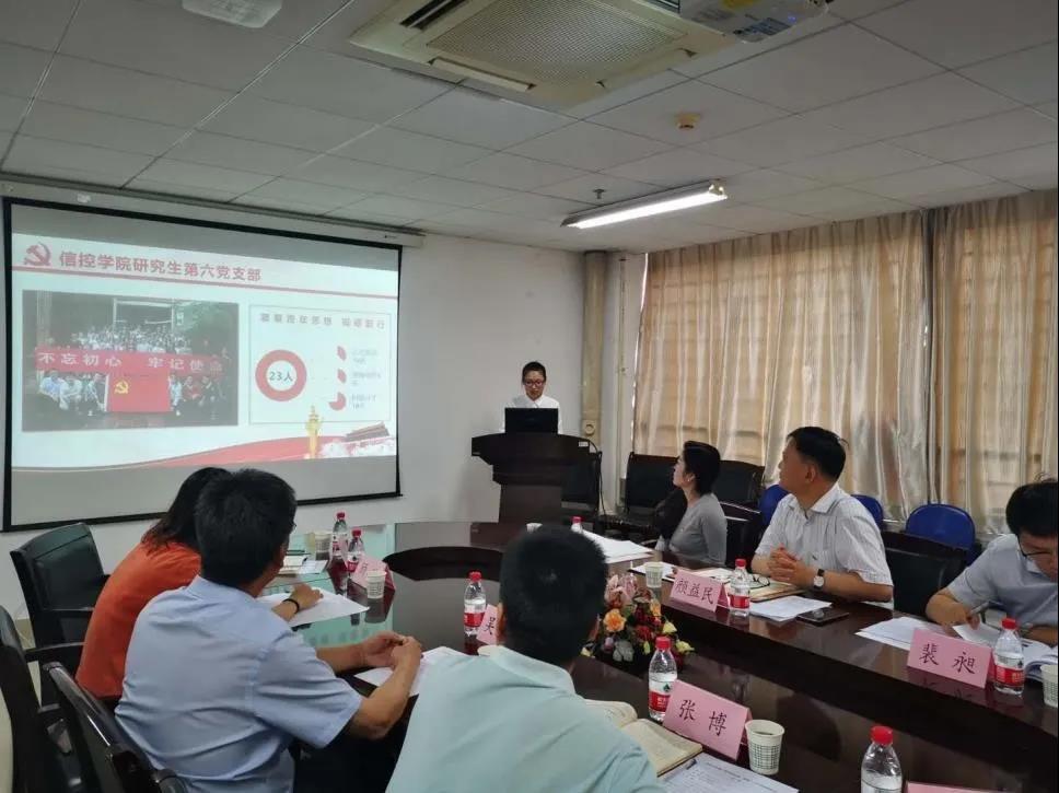 研究生第六党支部书记赵莎围绕支部党建工作情况进行汇报,详细介绍了研究生第六党支部党建“双创”工作的建设思路、主要做法、主要成效、未来展望,并就评估验收提出的相关问题进行回答。