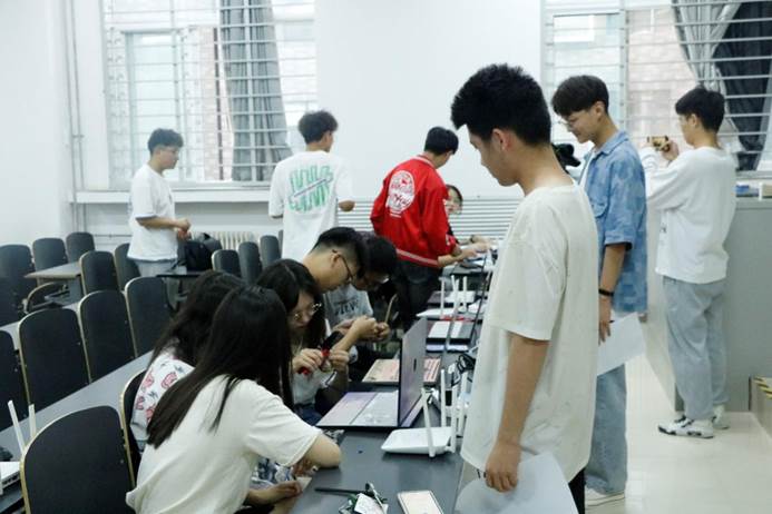 经过前期工作人员组织的现场培训及展示,同学们对比赛流程和规则有了大致的了解。正式比赛于6月3日在学府城9#208、9#209开展。比赛过程中,选手们以小组为单位参加比赛,各小组成员分工明确、配合默契、细心缜密。裁判组计时严谨、秉公记录,严格遵守裁判员规则,全心全意完成各项裁判工作,同时热心地帮助队员们解决比赛过程中出现的问题。比赛现场井然有序、赛况如火如荼。